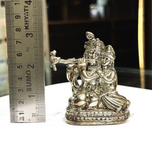 Buy a beautifully crafted Silver Radha Krishna Idol with antique finish. Perfect for home décor, pooja, and gifting. Elegant, spiritual & timeless design.