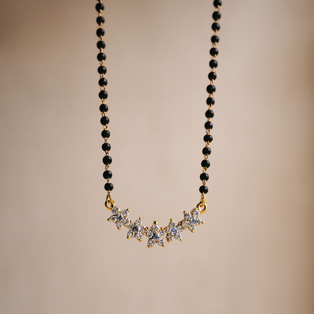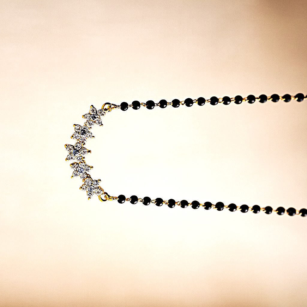 AERAN Gold Plated 925 Sterling Silver Round Solitaire Mangalsutra. It is made from pure 92.5% Sterling Silver and studded with high-quality AAA Cubic Zirconia which makes them very skin-friendly.