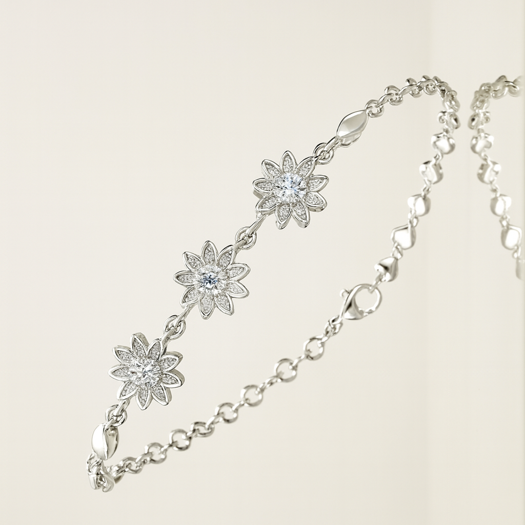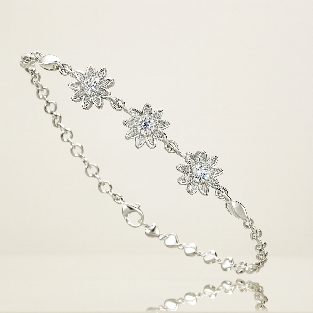 Women Silver-Toned & White Sterling Silver Zirconia Rhodium-Plated Style Bracelet