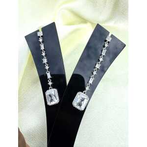 Add glamour to any occasion with these striking silver drop earrings, featuring sparkling rectangular and baguette-cut stones for a modern, elegant look that catches every eye.